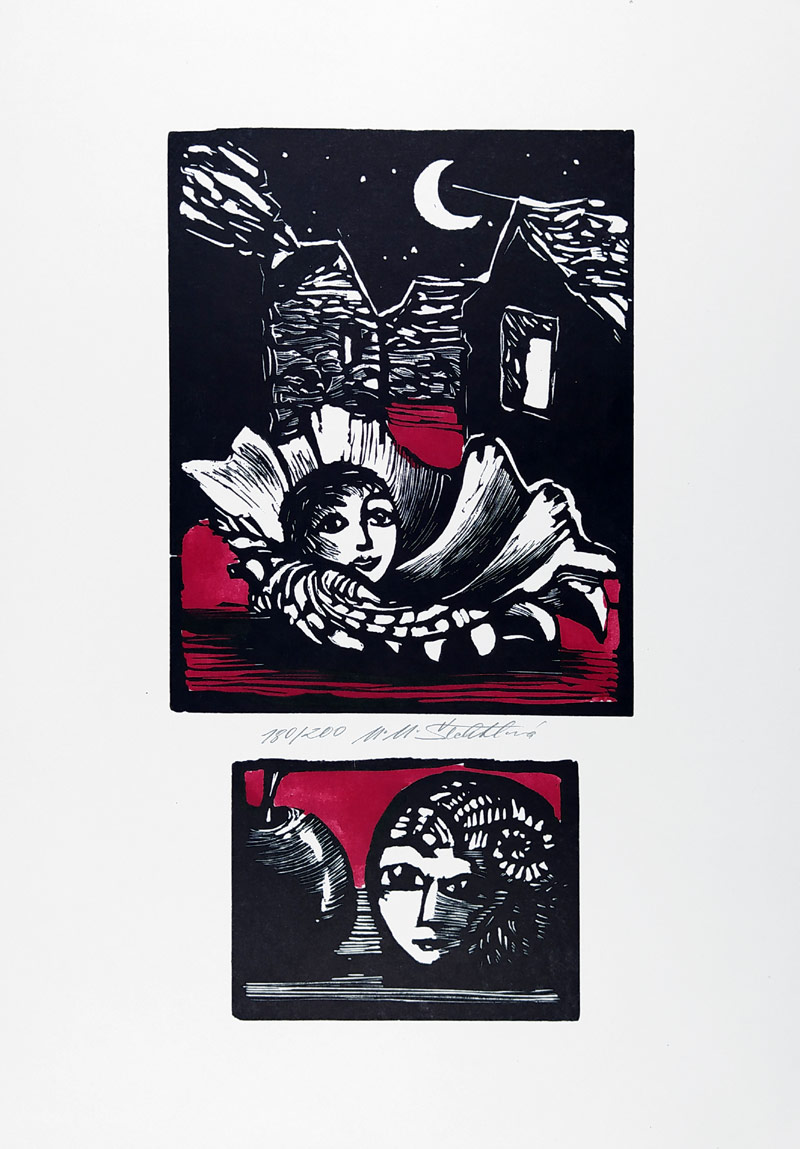 - Šechtlová Marie Michaela – Jasná noc, kolorovaný dřevoryt, ca 1990