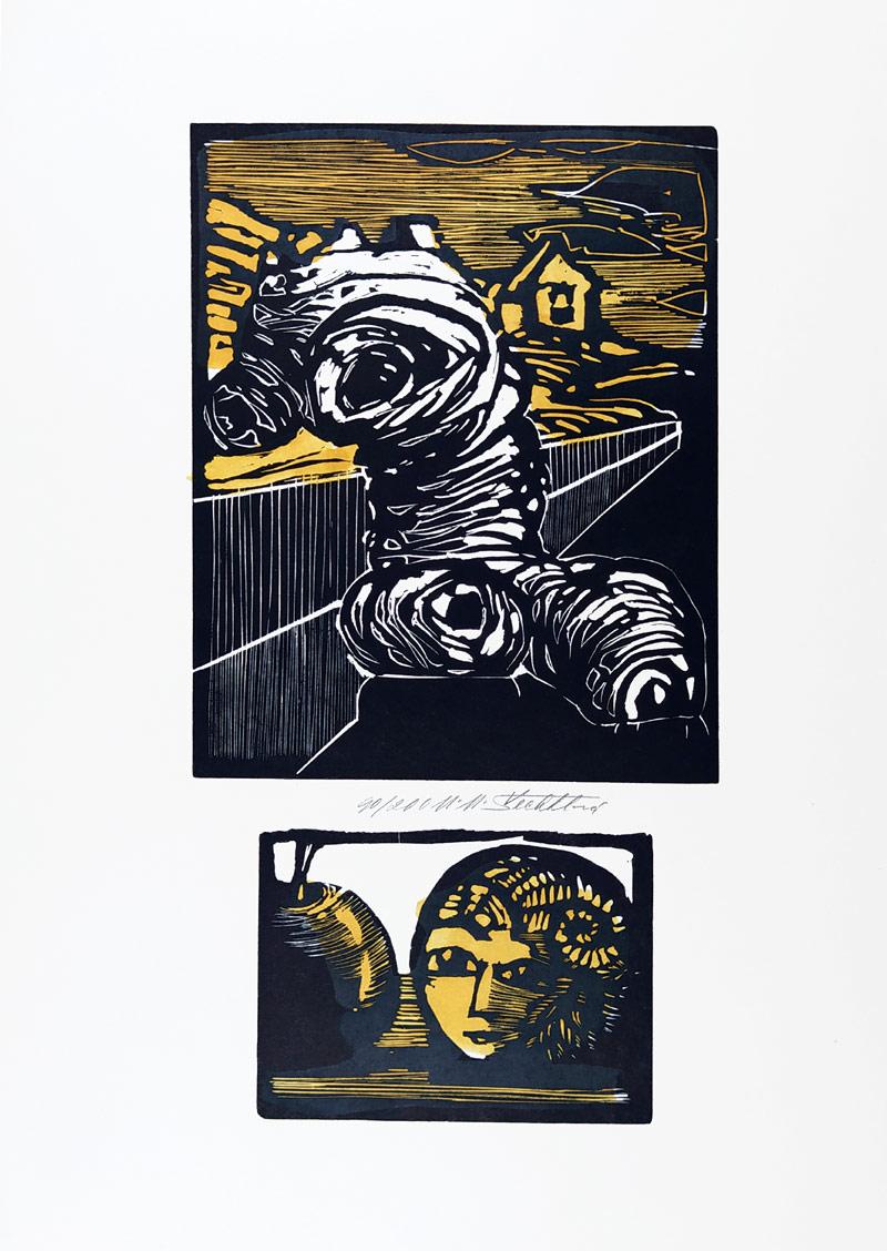 - Šechtlová Marie Michaela – Proměny, kolorovaný dřevoryt, ca 1990