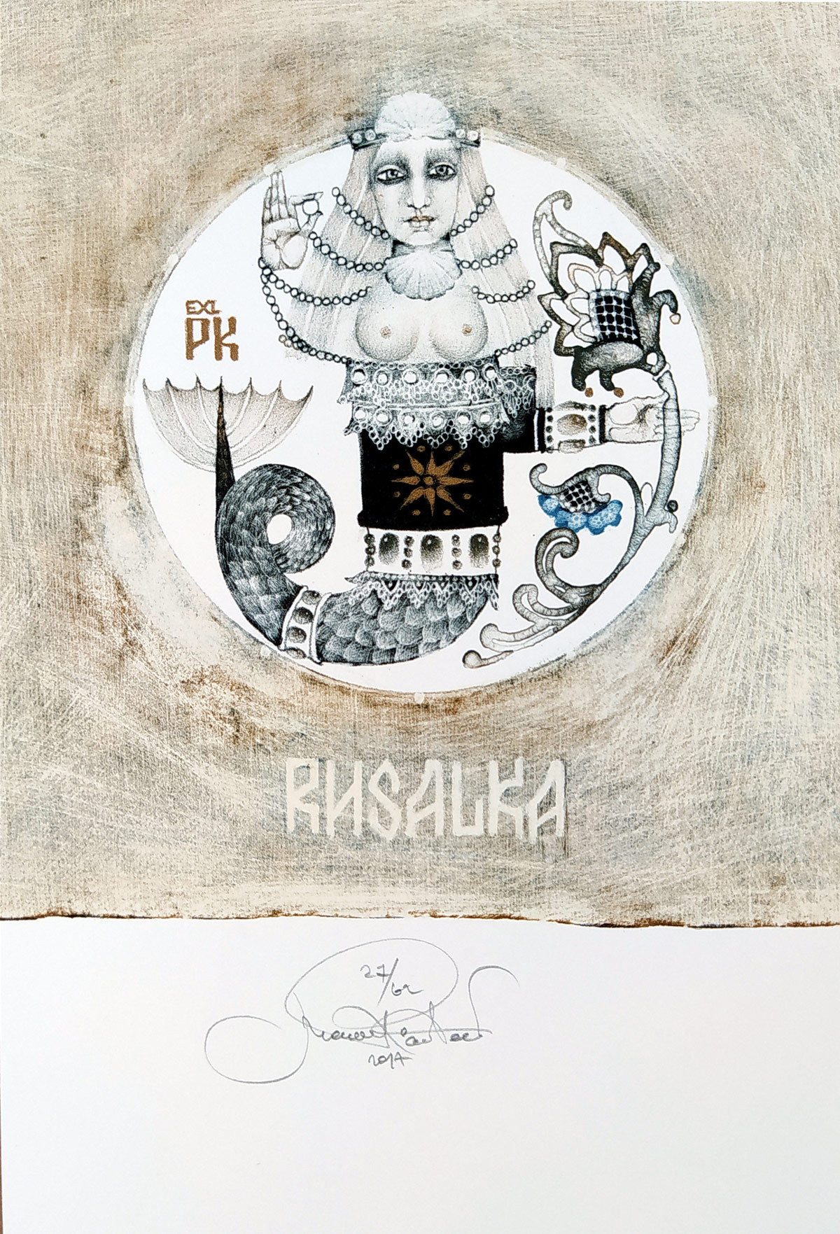 Richterová Marina – Rusalka, Ex libris PK, barevná litografie, 2017skladem2 100 Kč/ ks