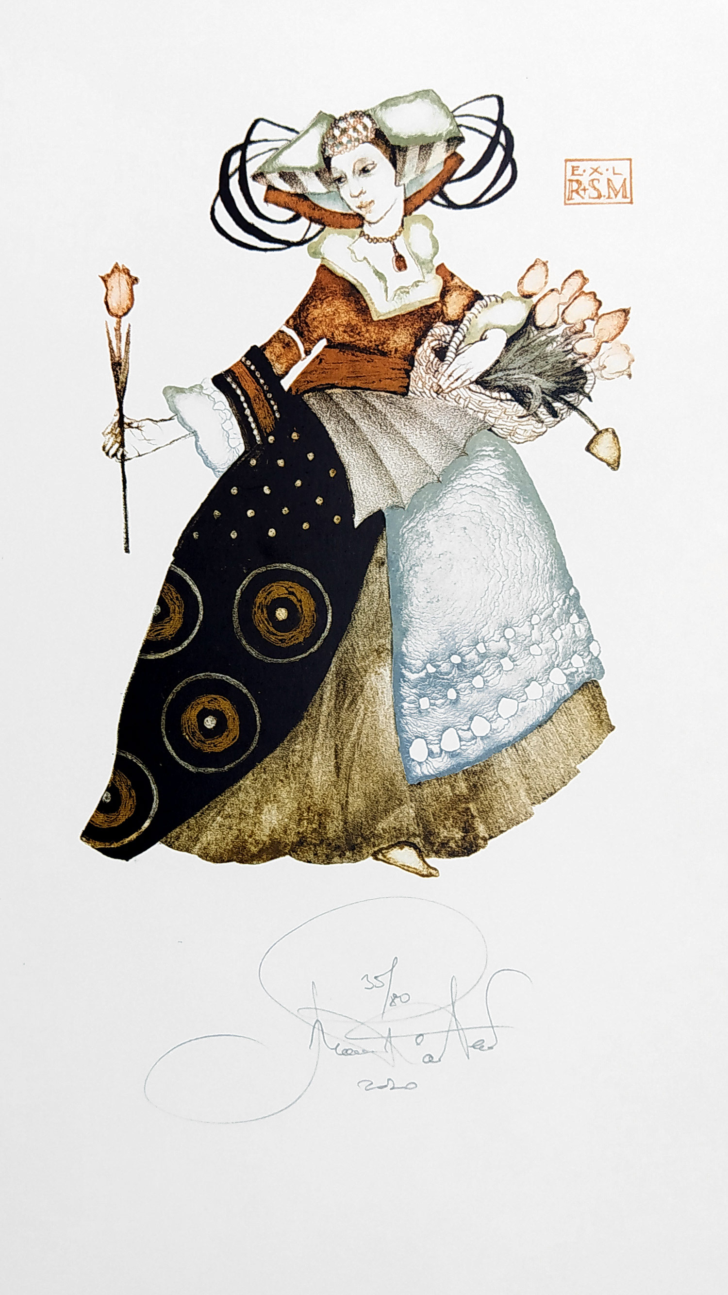- Richterová Marina – Žena a růže, Ex libris R+S.M, barevná litografie, 2020