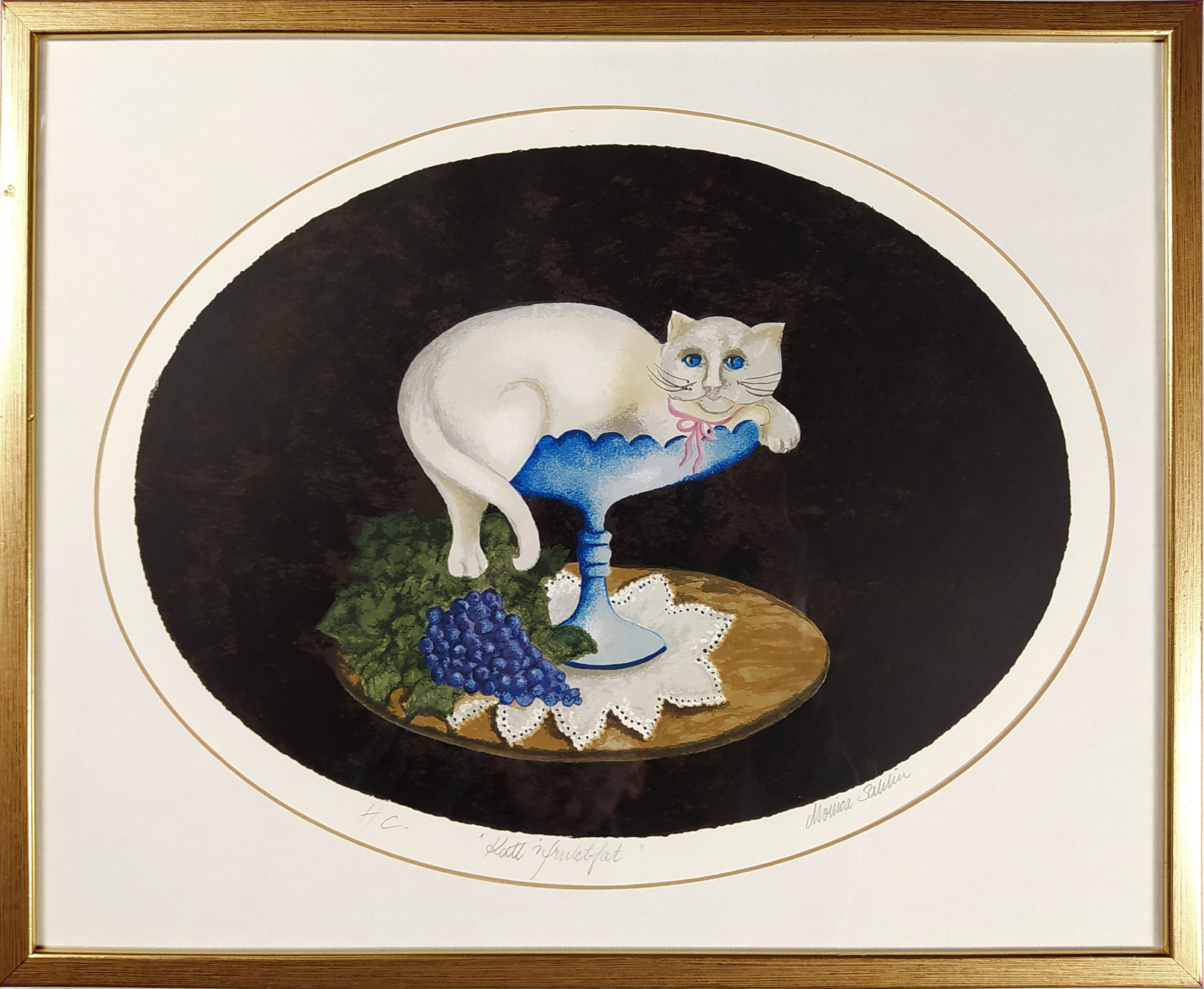 Sahlin Monica – Modroočka, kolorovaná litografie, ca 1990. Signováno tužkou vpravo dole. Celkový rozměr: 40,0 cm × 48,8 cm.