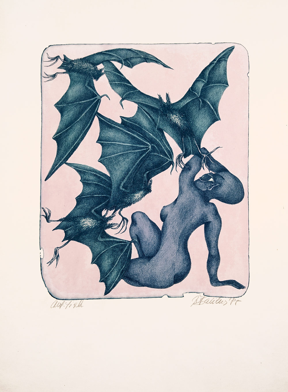 Neurčený autor – Netopýří žena, barevná litografie s podtiskem, 1985skladem1 800 Kč/ ks