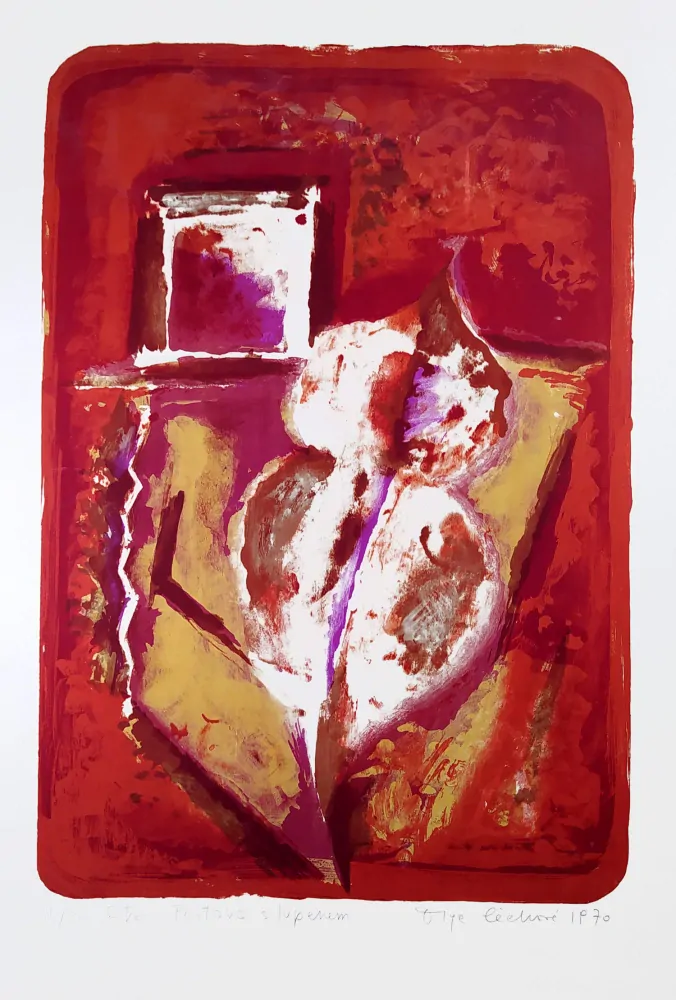 - Čechová Olga – Postava s lupenem, rozměrná barevná litografie, 1970