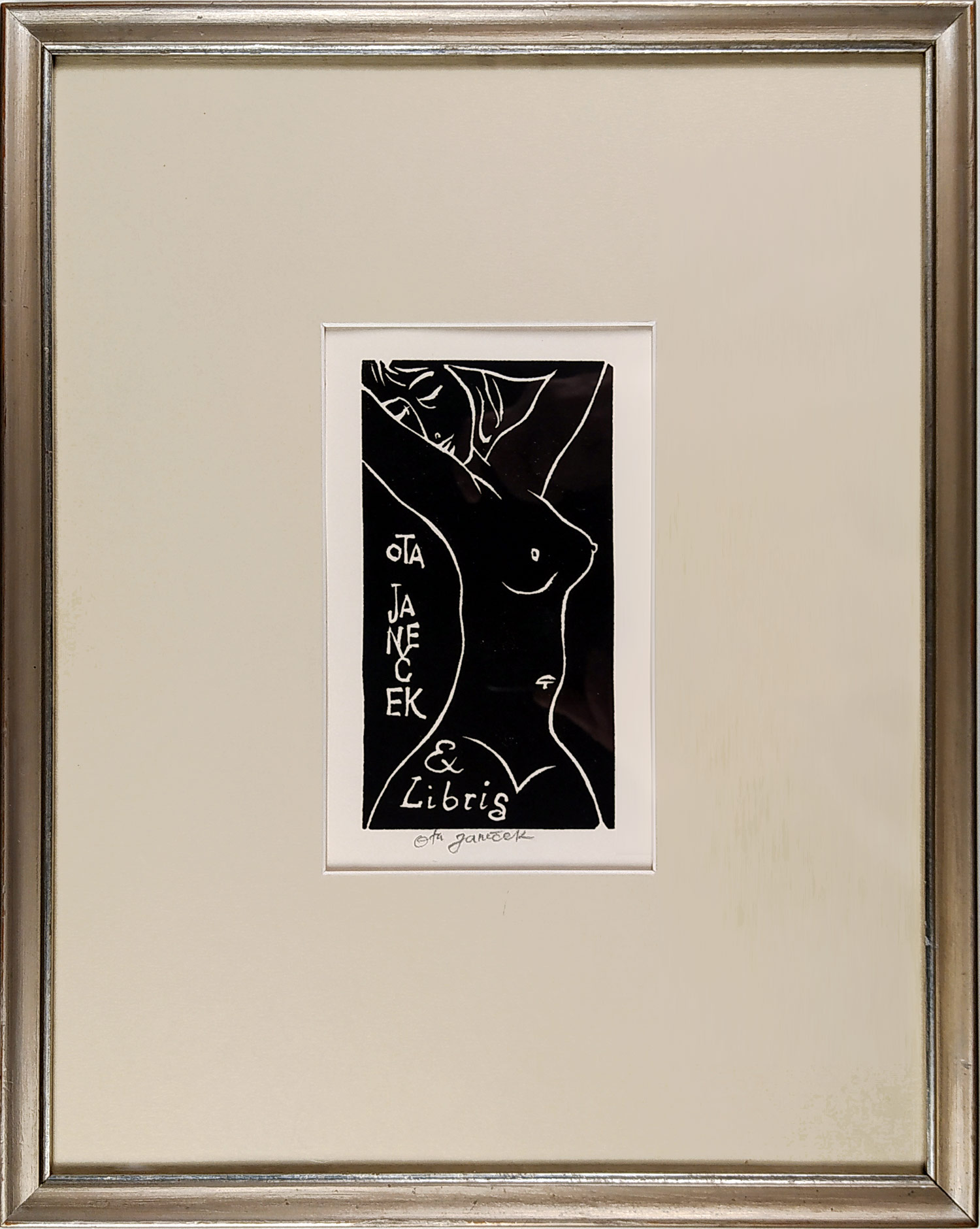- Janeček Ota – Akt, vlastní Ex libris, původní linoryt, nedatováno