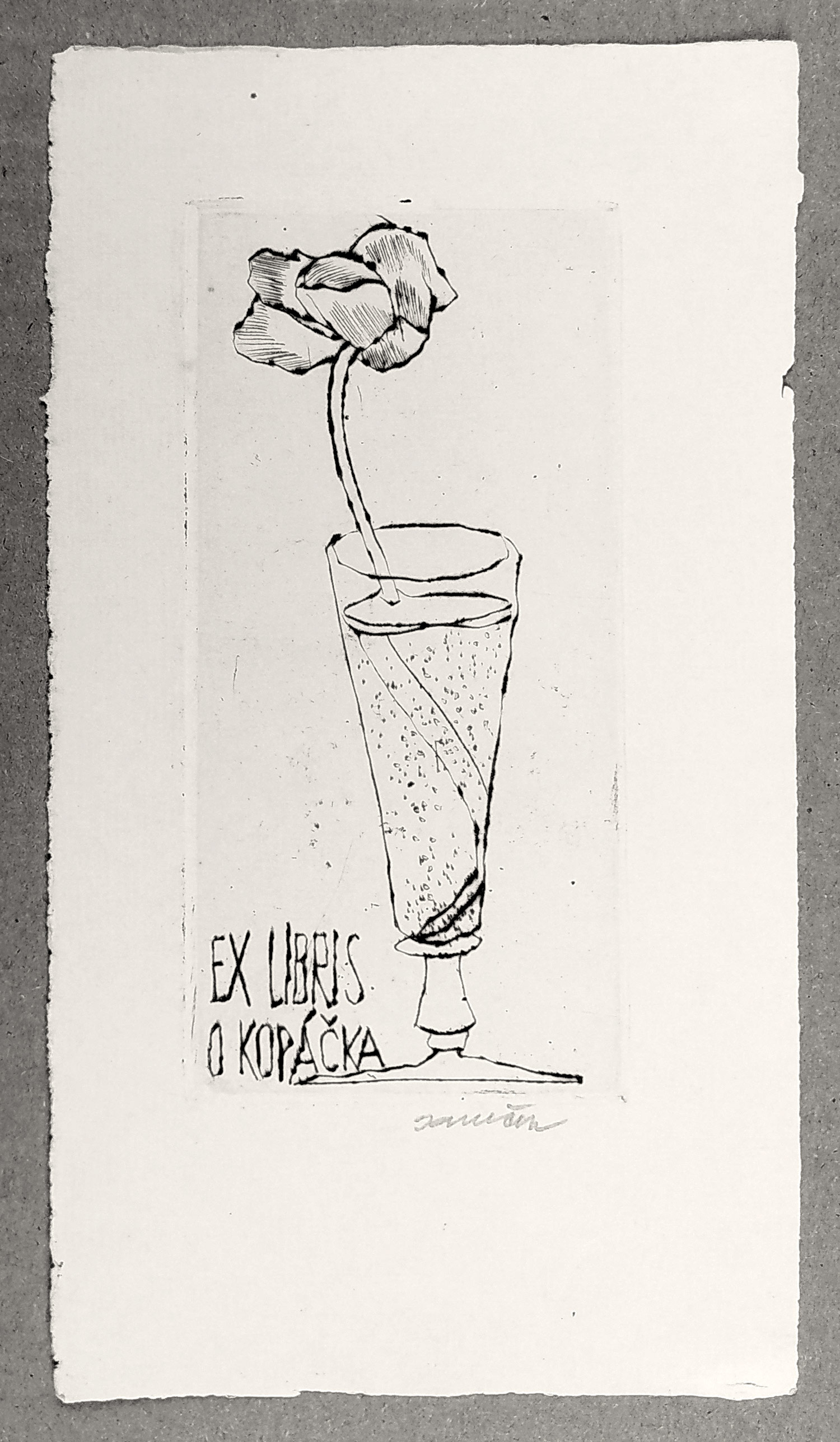 - Janeček Ota – Ex libris O. Kopáčka, původní lept, 1954