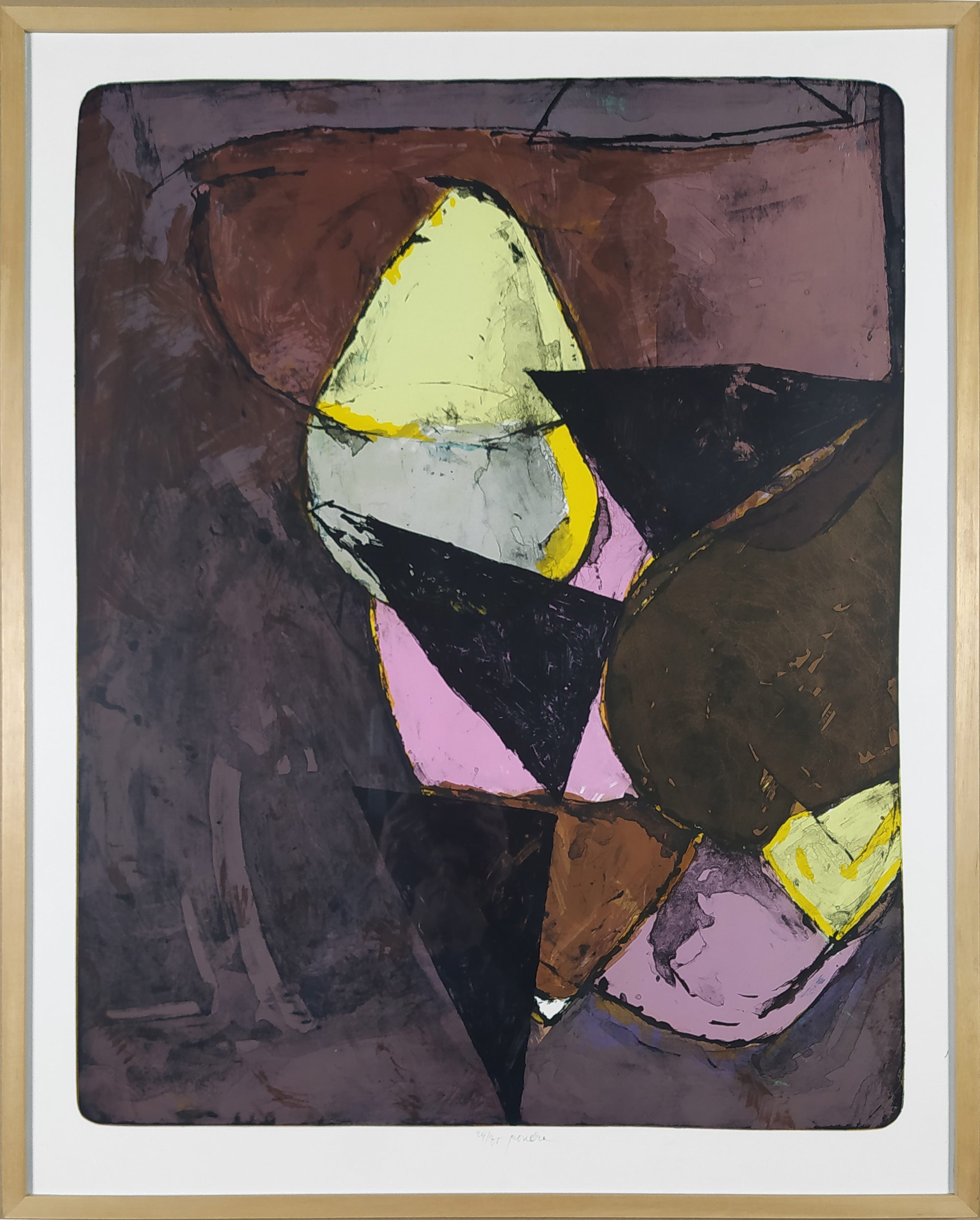 Roučka Pavel – Bez názvu, barevná litografie, č. 24/75, nedatováno. Signováno tužkou uprostřed dole. Celkový rozměr v rámu: 81,7 cm × 65,6 cm.