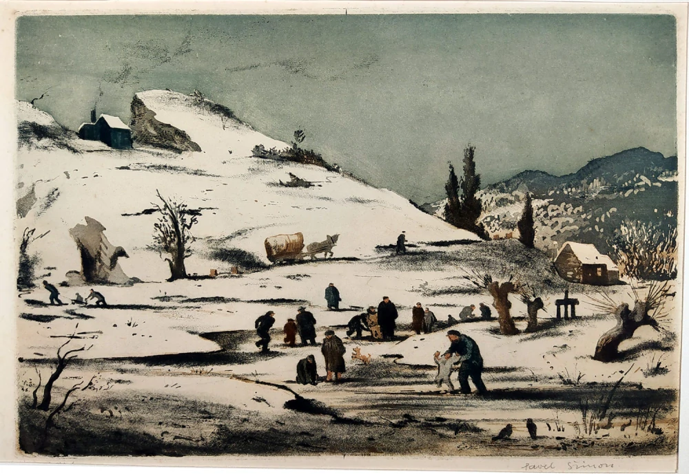 - Šimon Pavel – Zima, autorský tisk, původní barevný lept, nedatováno