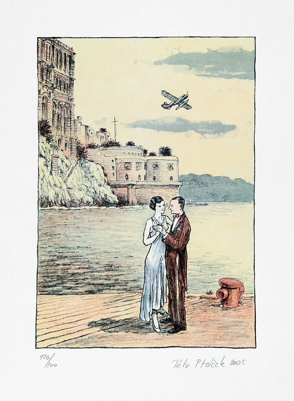 Ptáček Petr – Milenci, původní barevná litografie, 2005.