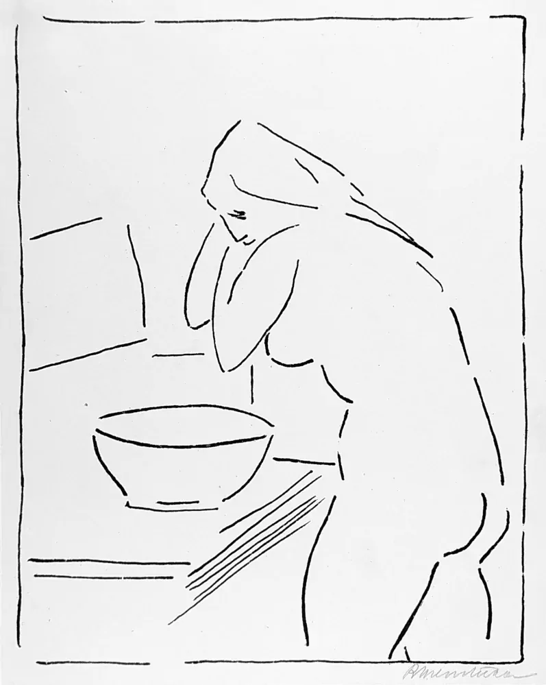 Kremlička Rudolf – Toaleta, původní litografie, nedatováno. Celkový rozměr: 18,8 cm × 15,2 cm.