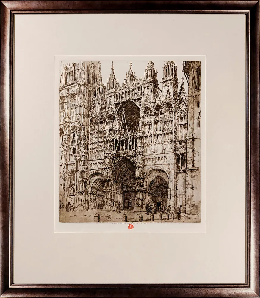 Průčelí katedrály Notre-Dame-de-l'Assomption v Rouenu, vernis mou, 1913. Celkový rozměr v rámu: 61,2 cm × 54,2 cm.