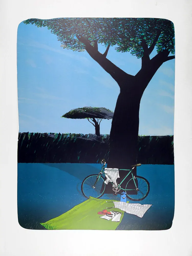 Bím Tomáš – Léto u Berounky, původní litografie, ca 1994. Celkový rozměr: 78,6 cm × 59,6 cm.