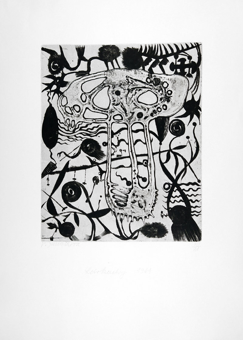 Janoušková Věra – Letokruhy, původní lept a suchá jehla, 1964