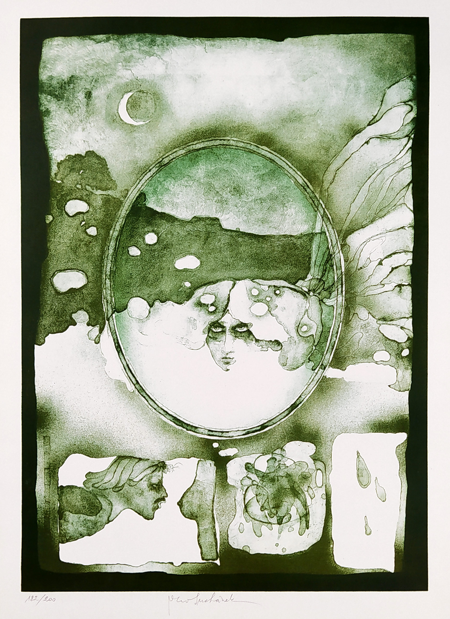 - Suchánek Vladimír – Magická žena, původní monochromatická litografie, nedatováno