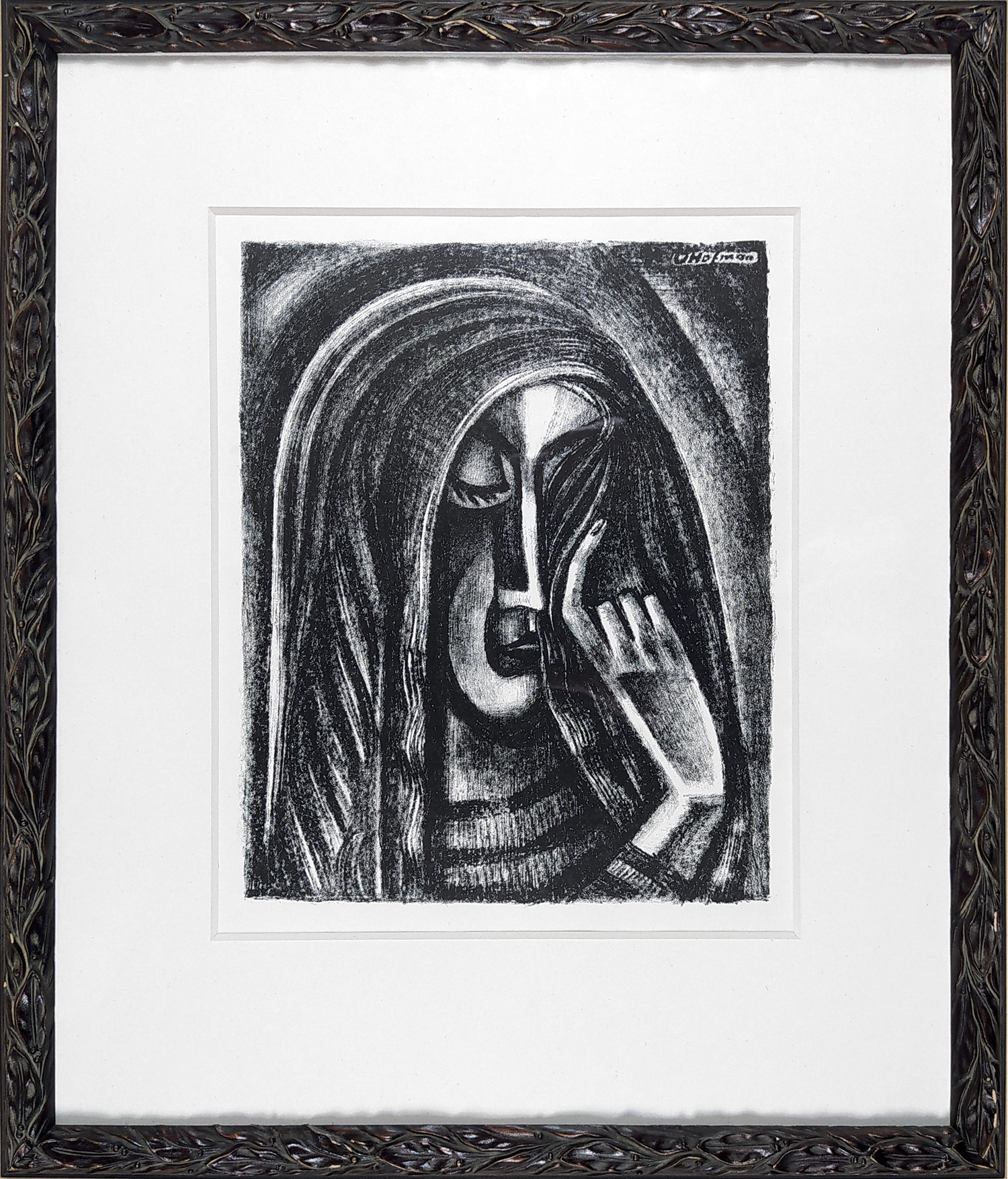 Hofman Vlastislav – Magdalena (Plačící žena), původní litografie, 1919. Zcela neznámá a vzácná litografie autora, ze soukromé sbírky výtvarníka Carryho Hausera (razítko sbírky na rubu).