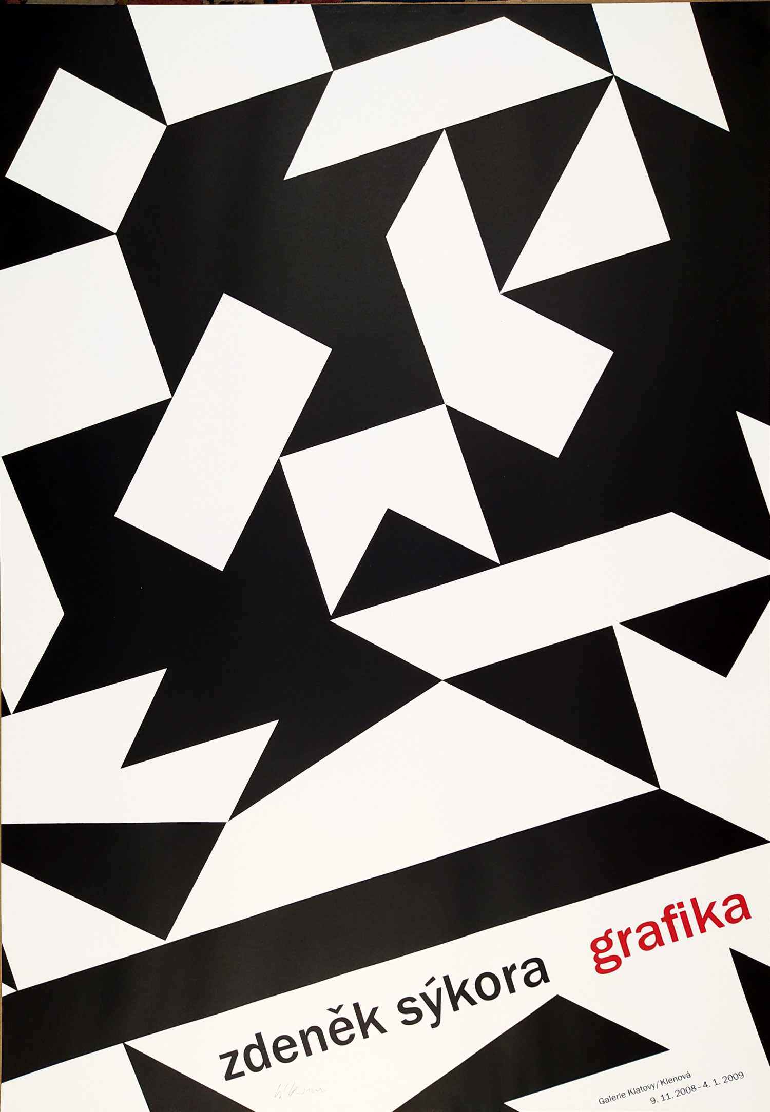 Sýkora Zdeněk – Zdeněk Sýkora grafika, signovaná serigrafie, 2008. Signováno tužkou uprostřed dole. Plakát vydaný u příležitosti stejnojmenné výstavy Zdeněk Sýkora – grafika, konané od 9. 11. 2008 do 4. 1. 2009, Galerie Klatovy/ Klenová. Vydavatel: Galerie Klatovy/Klenová ve spolupráci s autorem (limitovaná edice serigrafických plakátů v úpravě Zdeňka Zieglera). Celkový rozměr: 99,5 cm × 70,0 cm.