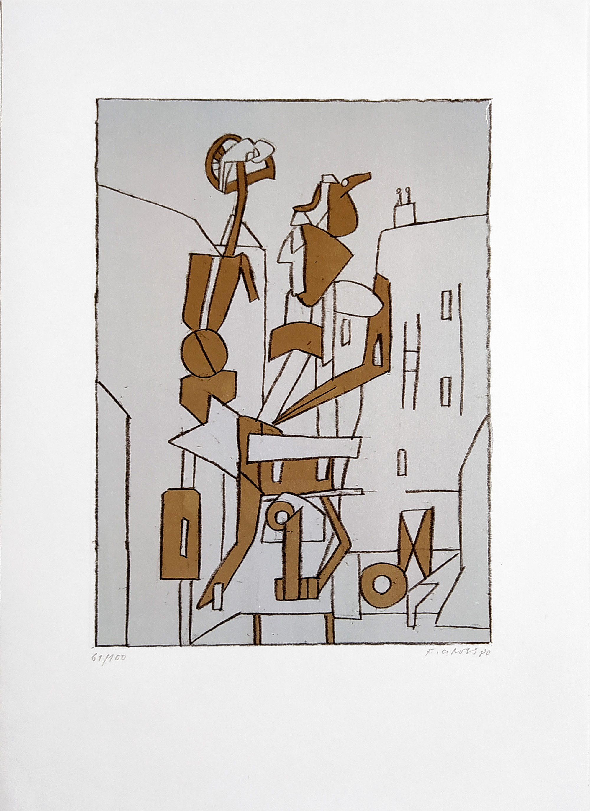 Gross František – Dvě postavy ve městě, původní barevná litografie, 1980
