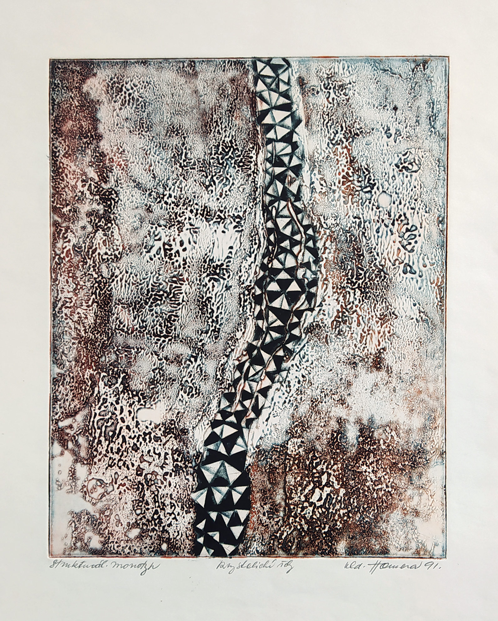Hamera Oldřich – Krystalické řeky, strukturální monotyp, 1991. Signováno tužkou vpravo dole s datací.