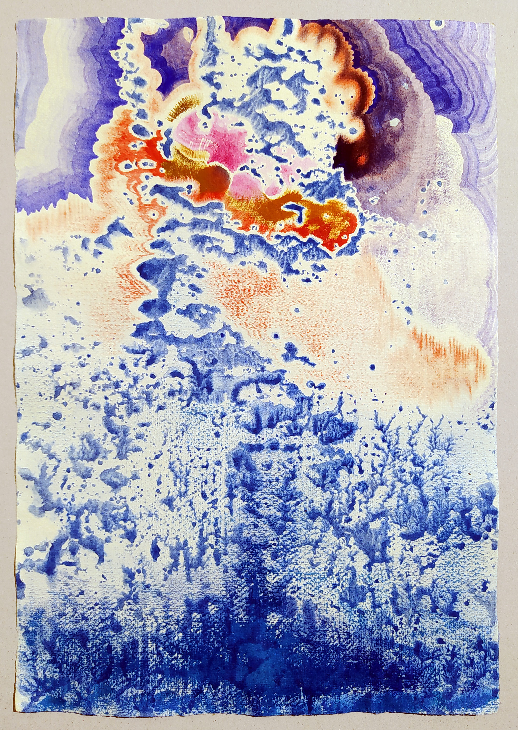 Holcová Veronika – Kočkodan v lázni, olejomalba na ručním papíře Losín, 2022. Signováno tužkou na rubu s datací a názvem díla. Celkový rozměr: 42 cm × 29 cm.