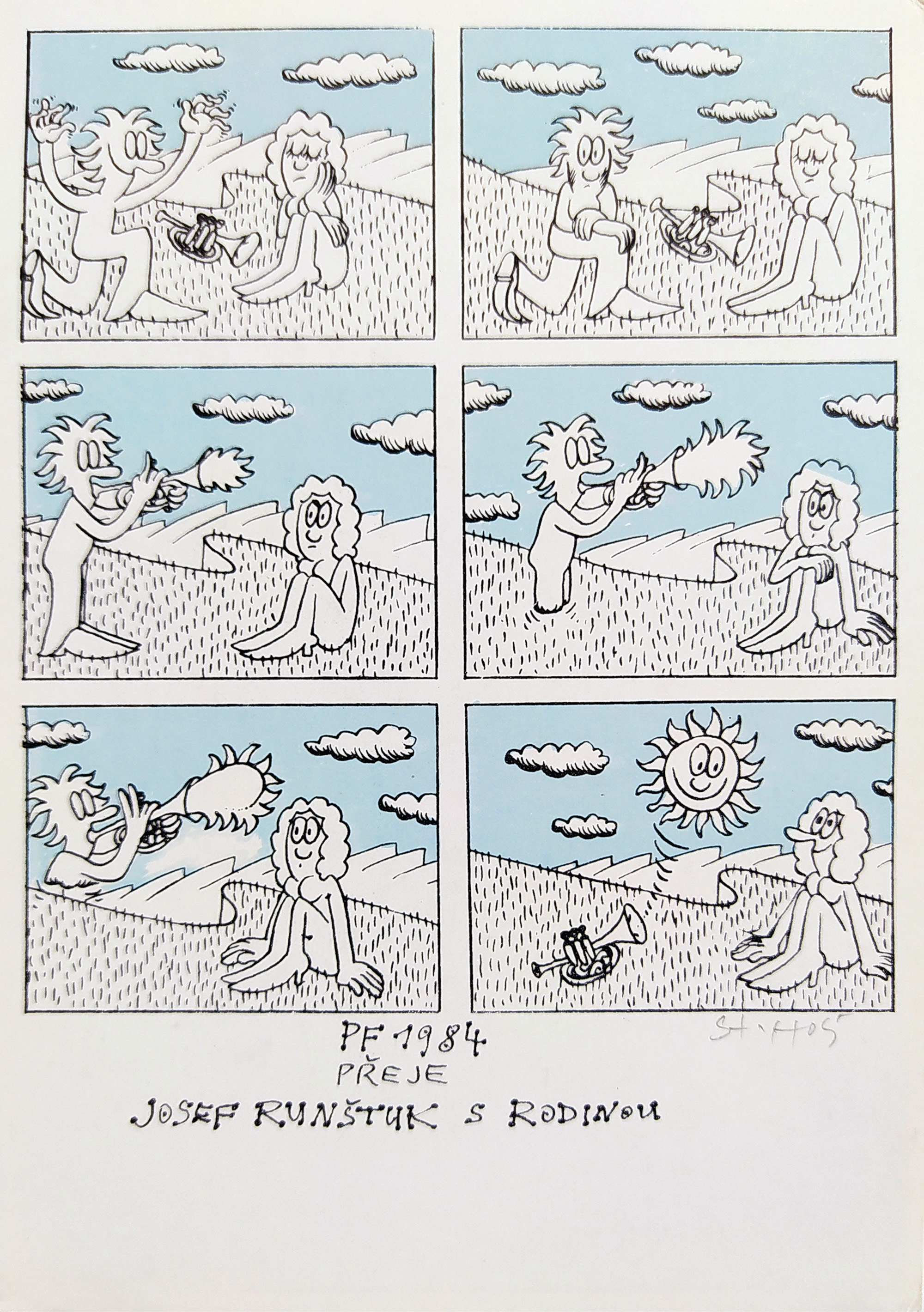 - Holý Stanislav – PF 1984 Josef Runštuk s rodinou, barevná serigrafie, 1983