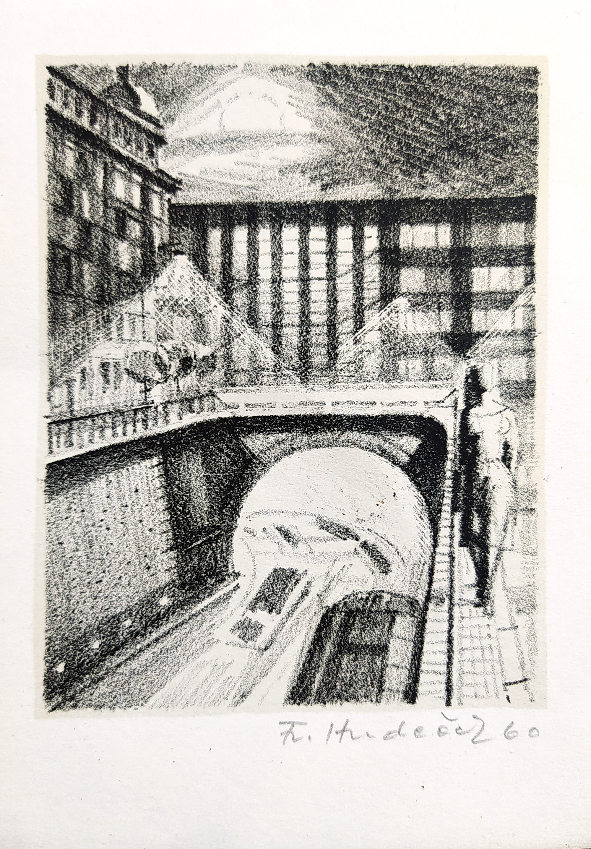- Hudeček František – Praha, Letenský tunel, původní litografie, 1960