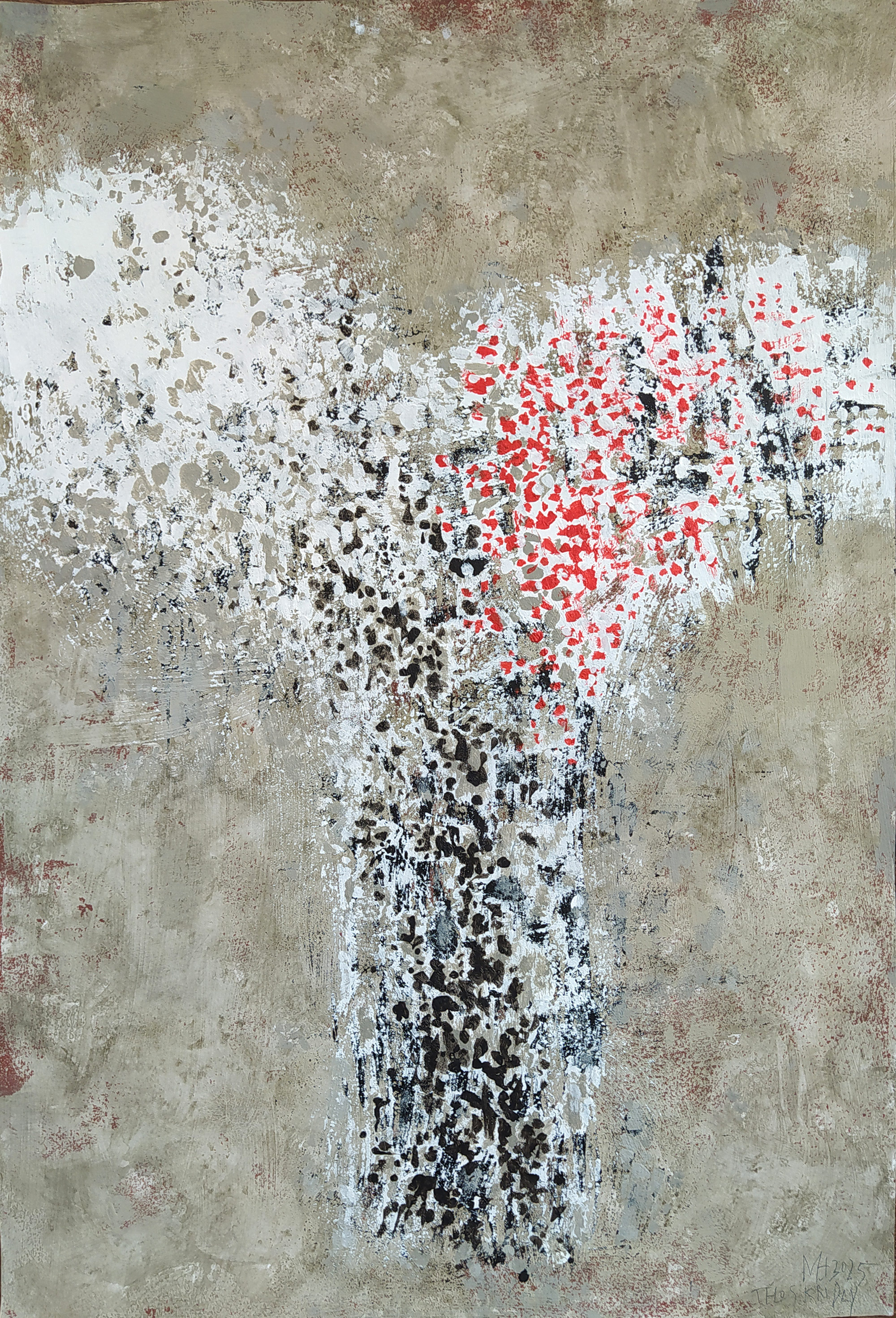 - Husák Milivoj – Tělo s křídly, malba, akryl, silikát, 2025