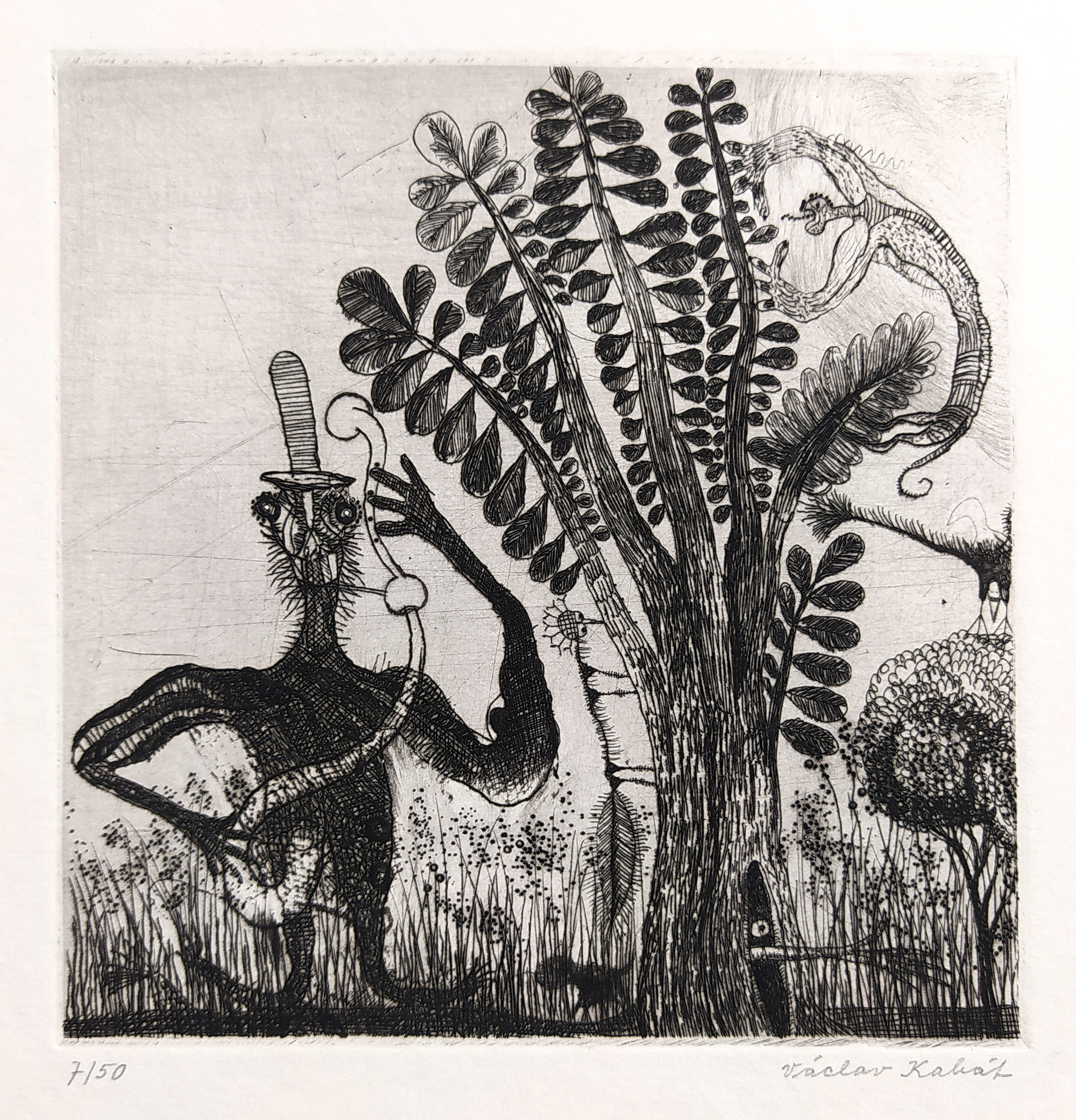 - Kabát Václav – Lesní muž, původní lept, číslováno 7/50, nedatováno