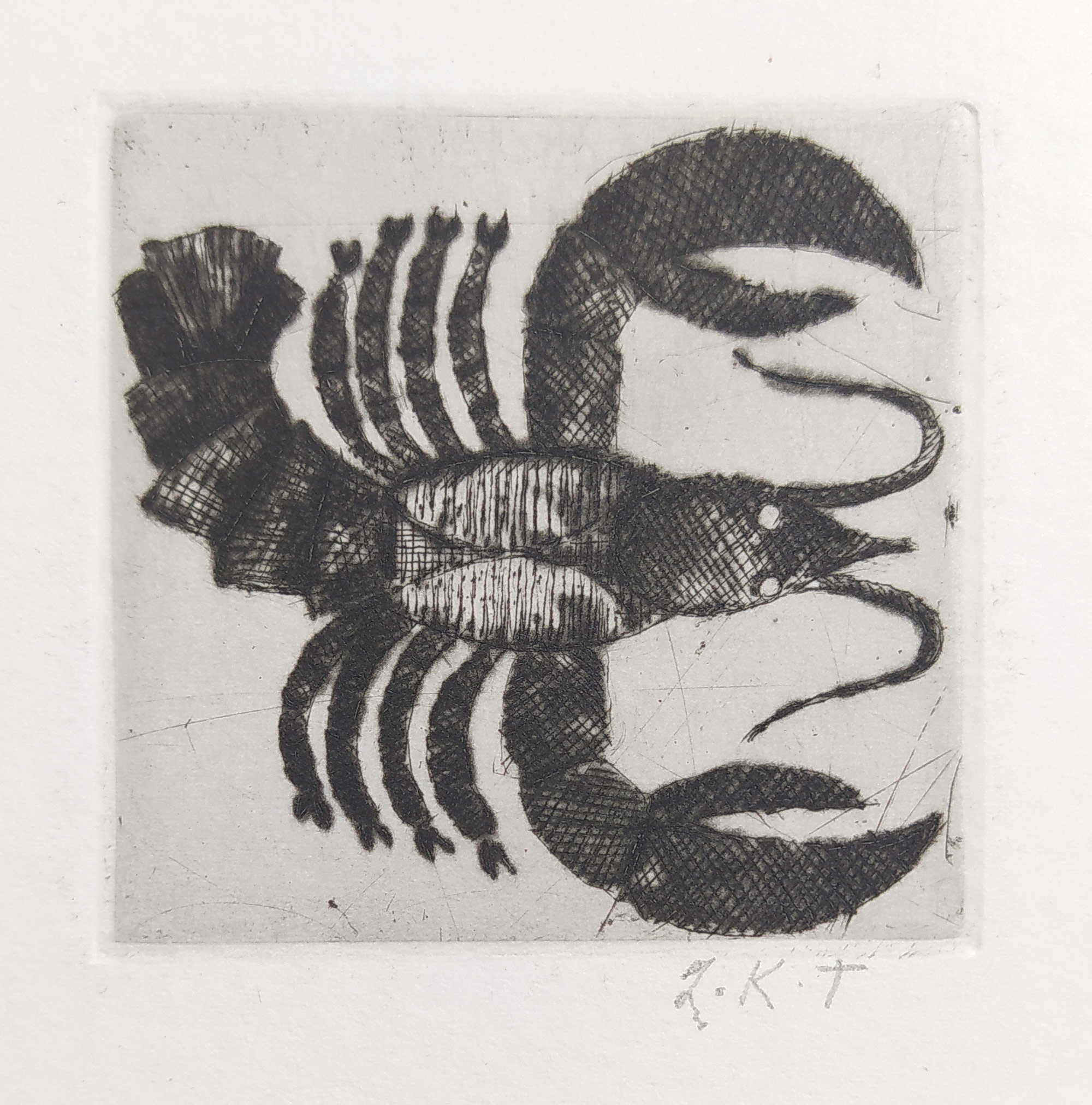 Zdena Kabátová-Táborská – Rak, původní lept, nedatováno. Signováno tužkou vpravo dole Z. K. T. Celkový rozměr grafického listu: 17,9 cm × 13,8 cm.