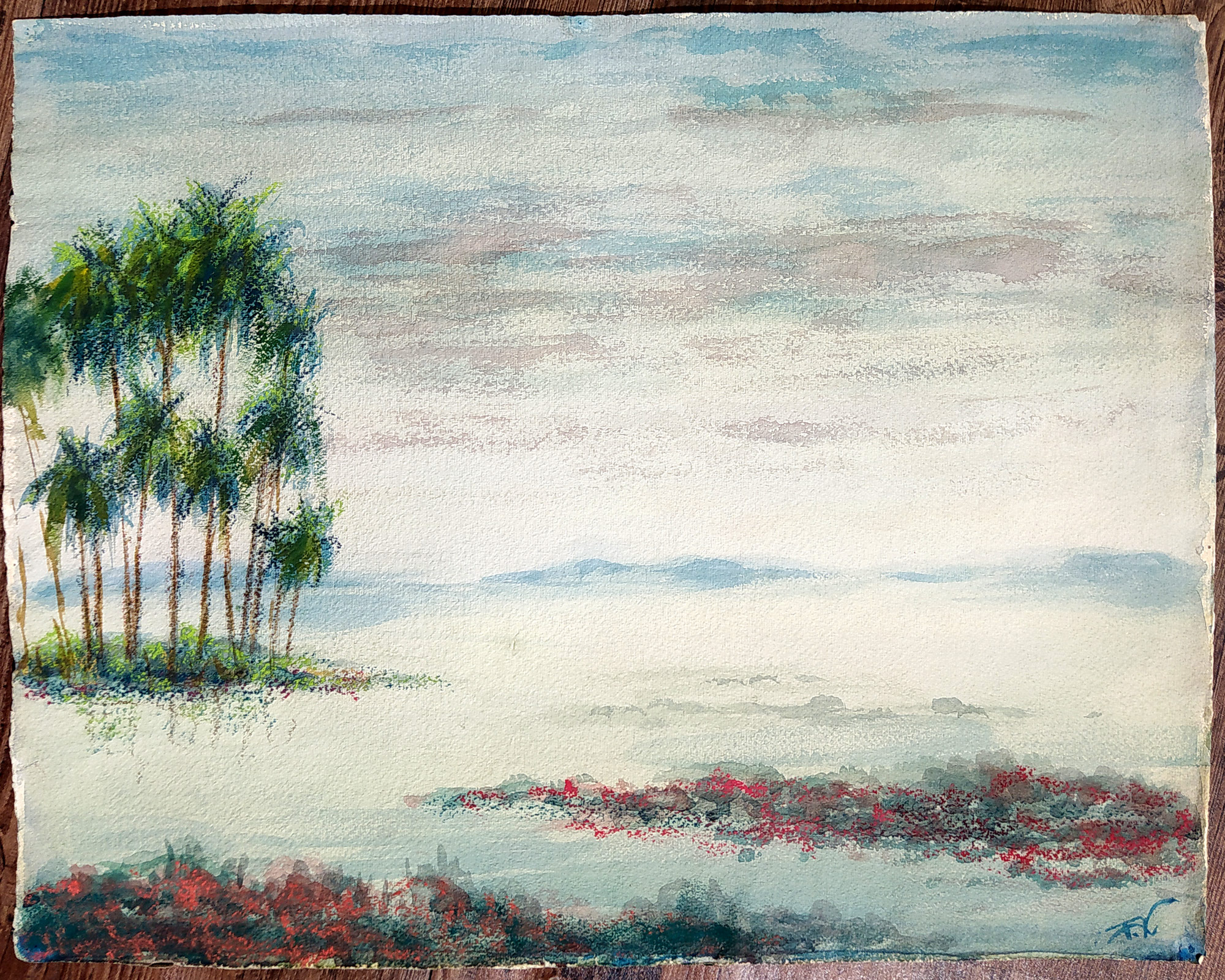 František Kobliha – Bez názvu, malba akvarelem, nedatováno. Signováno vpravo dole F. K.. Celkový rozměr: 45,0 cm × 56,6 cm.