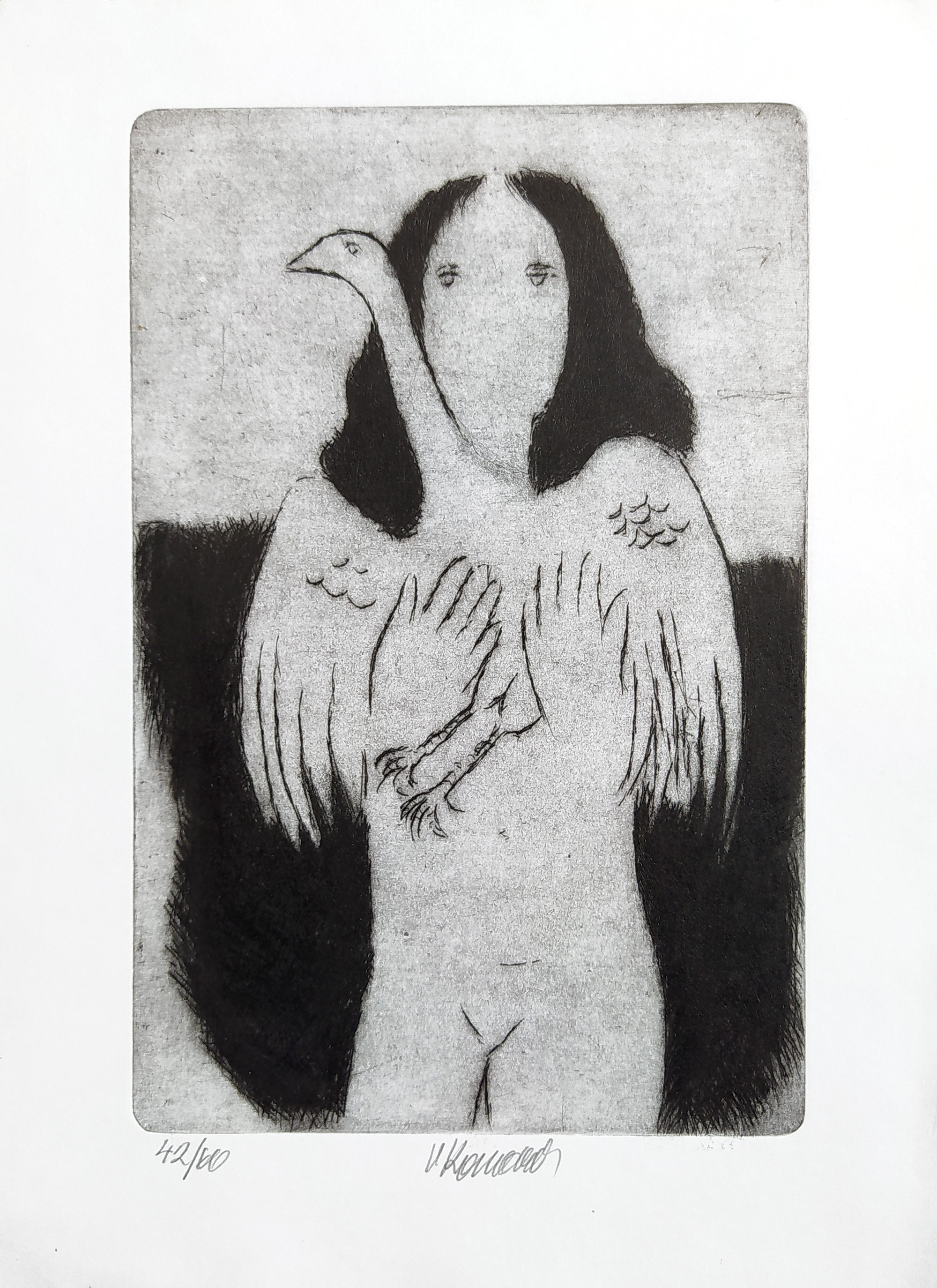 - Komárek Vladimír – Dívka a pták, původní lept, nedatováno