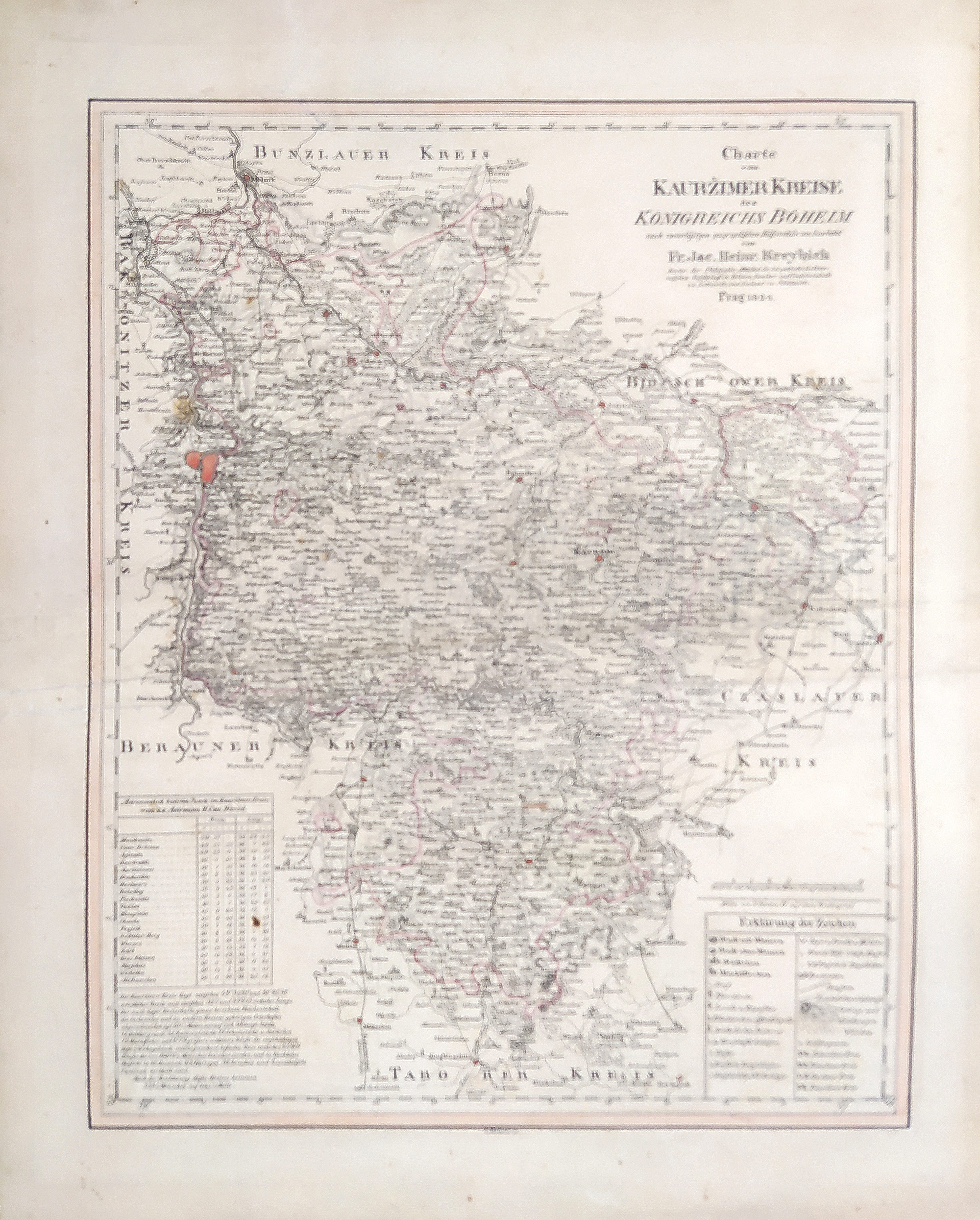 - Kouřimský kraj – František Jakub Jindřich Kreibich, staře kolorovaný původní mědiryt, 1824