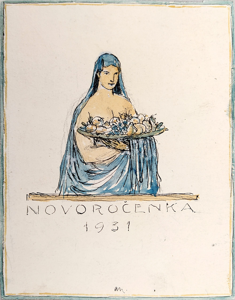- Nauman Arno – Návrh, Novoročenka 1931, kresba perem kolorovaná akvarelem, 1930