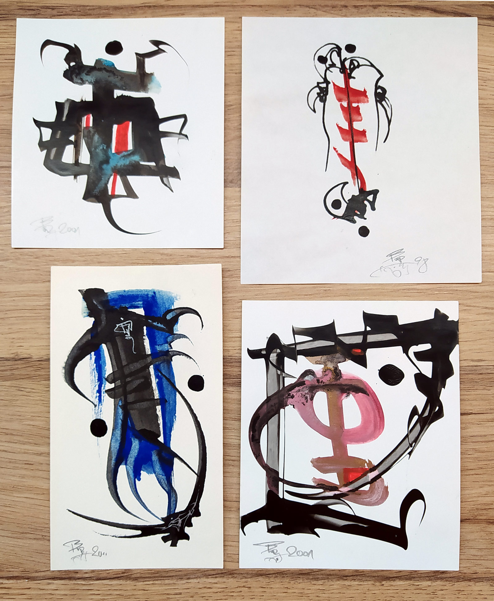 Hochman Bohumír Bob – Barevné abstrakce, Konvolut I., čtyři kresby, 1998–2001