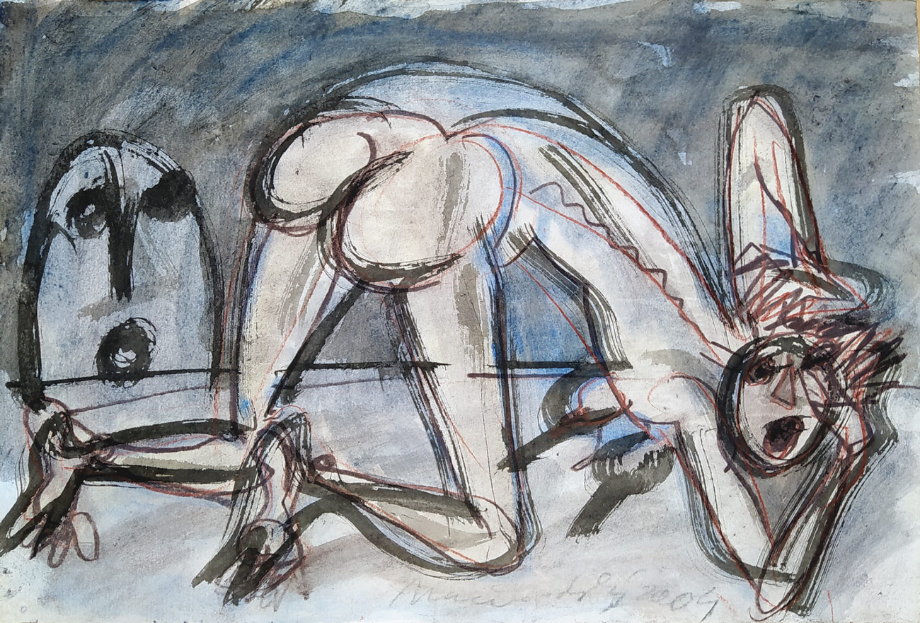 - Načeradský Jiří – Bez názvu, oboustranná kresba barevnou tužkou a akvarelem, 2004
