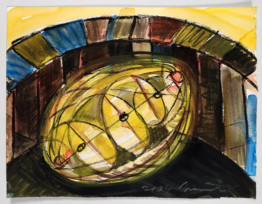 Načeradský Jiří – Bez názvu, signovaná kresba tuší a akvarelem, 2004. Signováno vpravo dole s datací. Celkový rozměr: 25,2 cm × 32,7 cm.