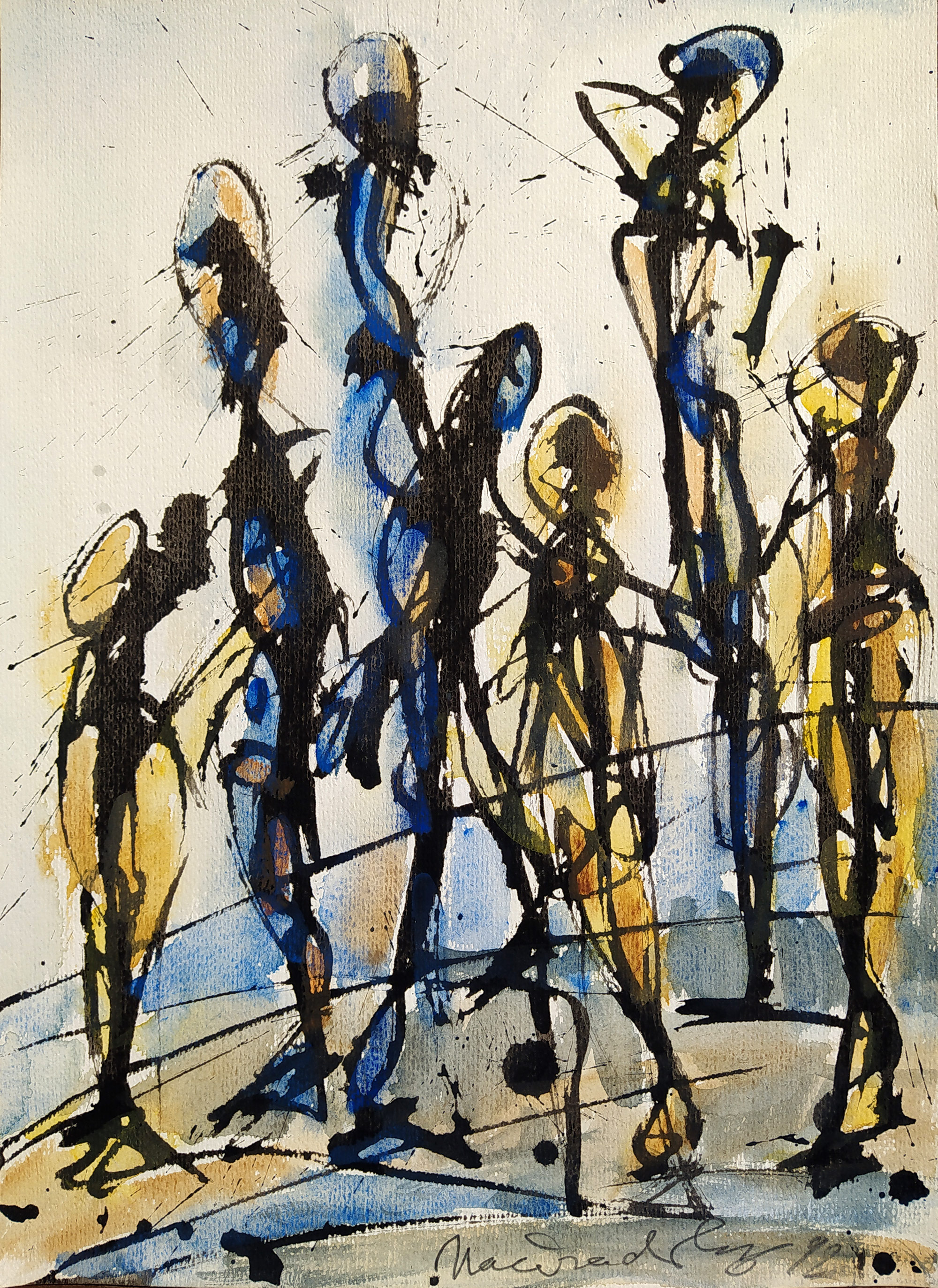 - Načeradský Jiří – Chodci, kresba tuší a akvarelem, 1992