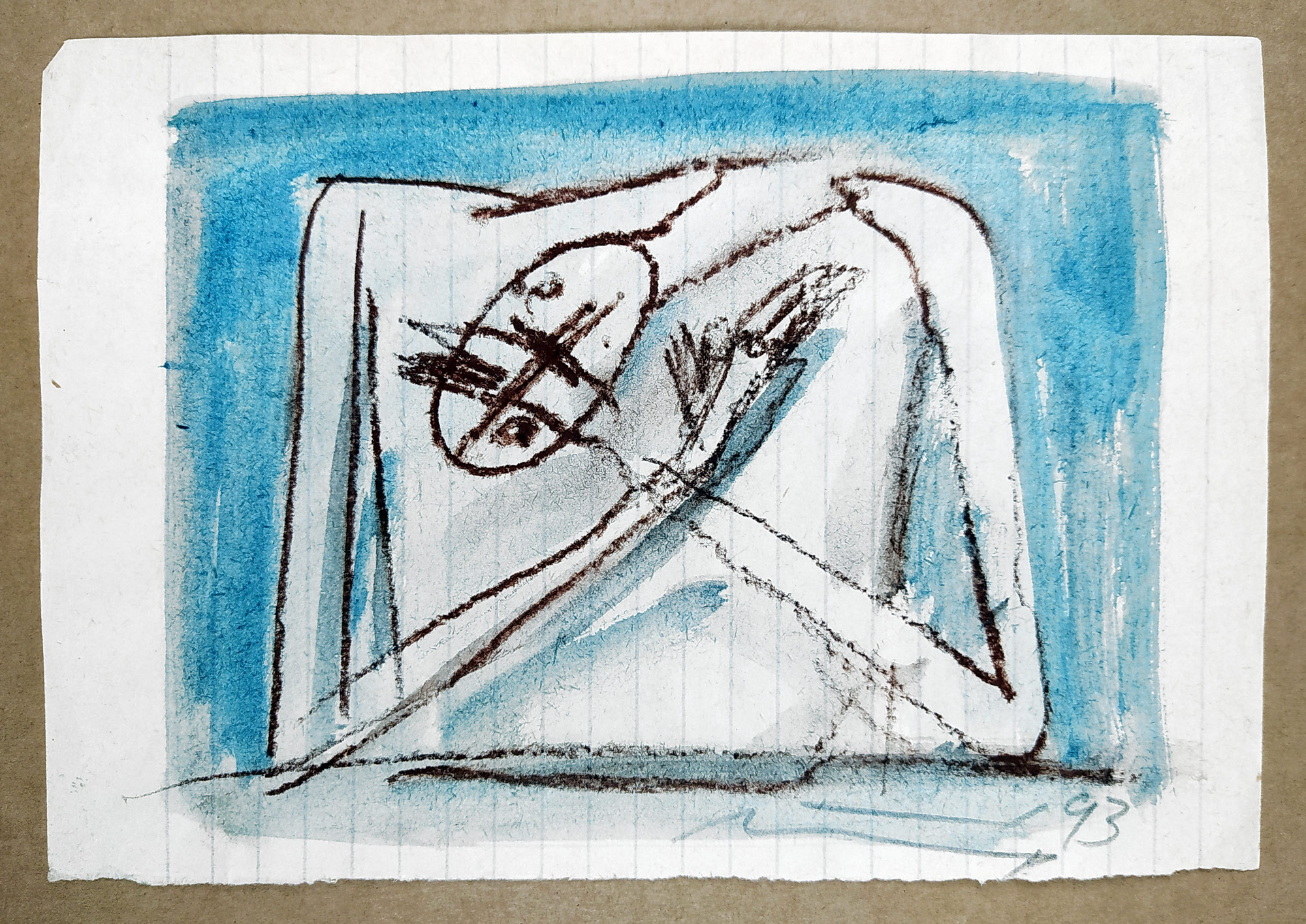 Načeradský Jiří – Studie muže, kresba pastelem, kolorovaná akvarelem, 1993. Signováno tužkou vpravo dole s datací. Celkový rozměr: 14,4 cm × 21,0 cm.