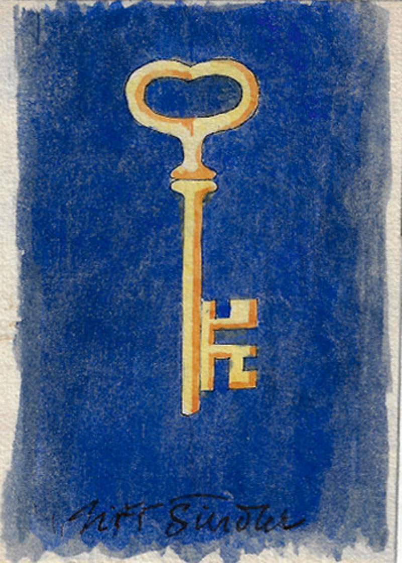 Šindler Jiří – Klíč, akvarelem kolorovaná kresba, ca 1970.