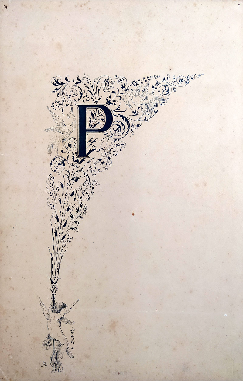 Mánes Josef – Marginálie s písmenem P, kresba tuší, ca 1860.