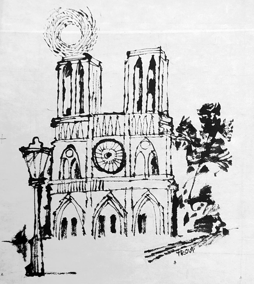 - Troup Miloslav – Katedrála Notre-Dame v Paříži, kresba tuší na ručním papíře, nedatováno