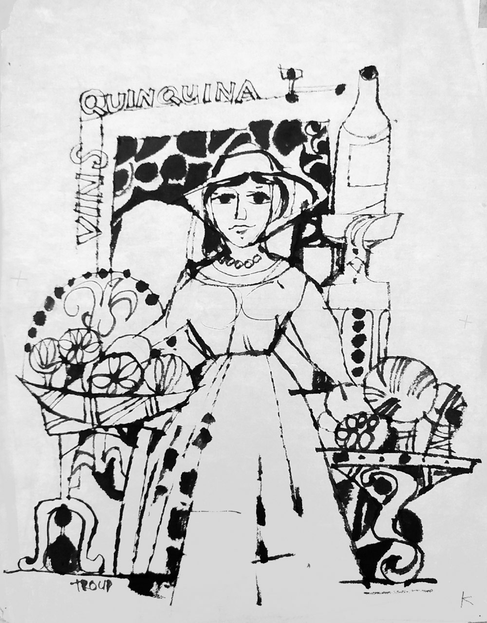 Troup Miloslav – Vins Quinquina, kresba tuší na ručním papíře, nedatováno