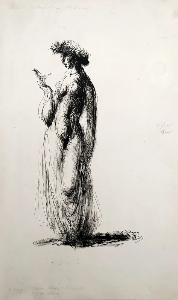 Wiesner Richard – Přilba hlíny, frontispis, původní perokresba, 1946. Perokresba byla přetištěna jako frontispis knihy Přilba hlíny Jaroslava Seiferta. Celkový rozměr: 35,7 cm × 21,3 cm.