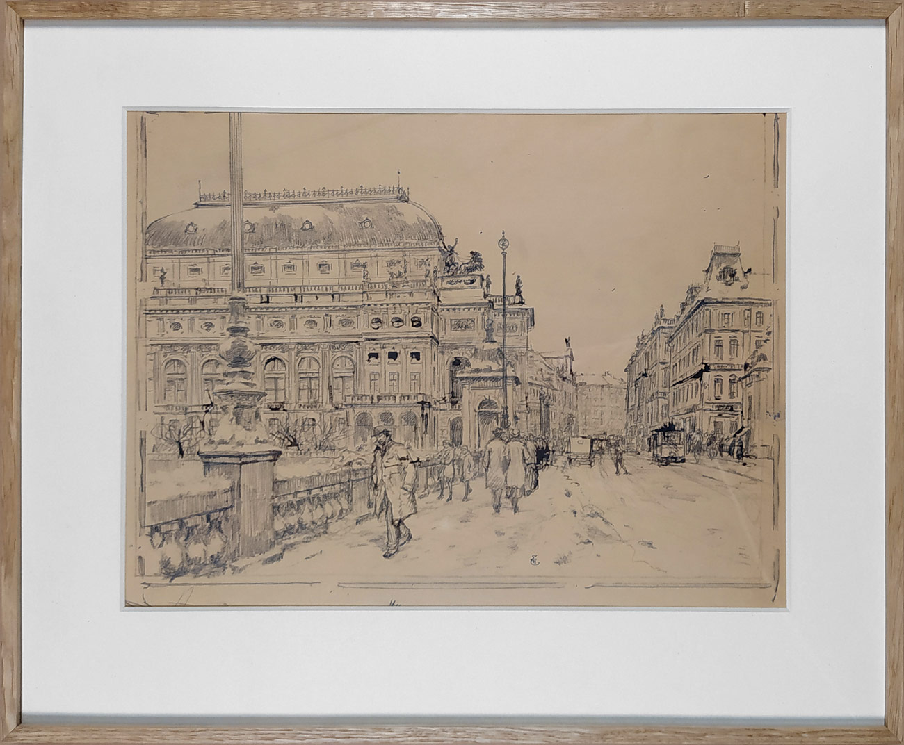 Šimon Tavík František – Národní divadlo v zimě, kresba tužkou, 1924