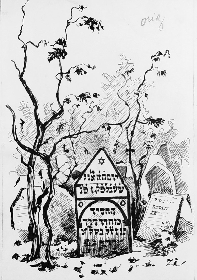 - Židé v Čechách – Tokstein Antonín F., původní návrh knižní obálky, kresba tuší, 1938