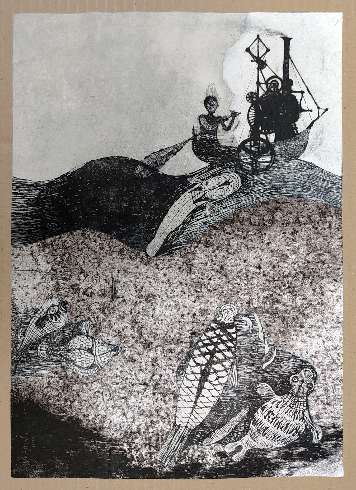 - Kabát Václav – Mořeplavec, ilustrace, perokresba, kombinovaná technika, nedatováno