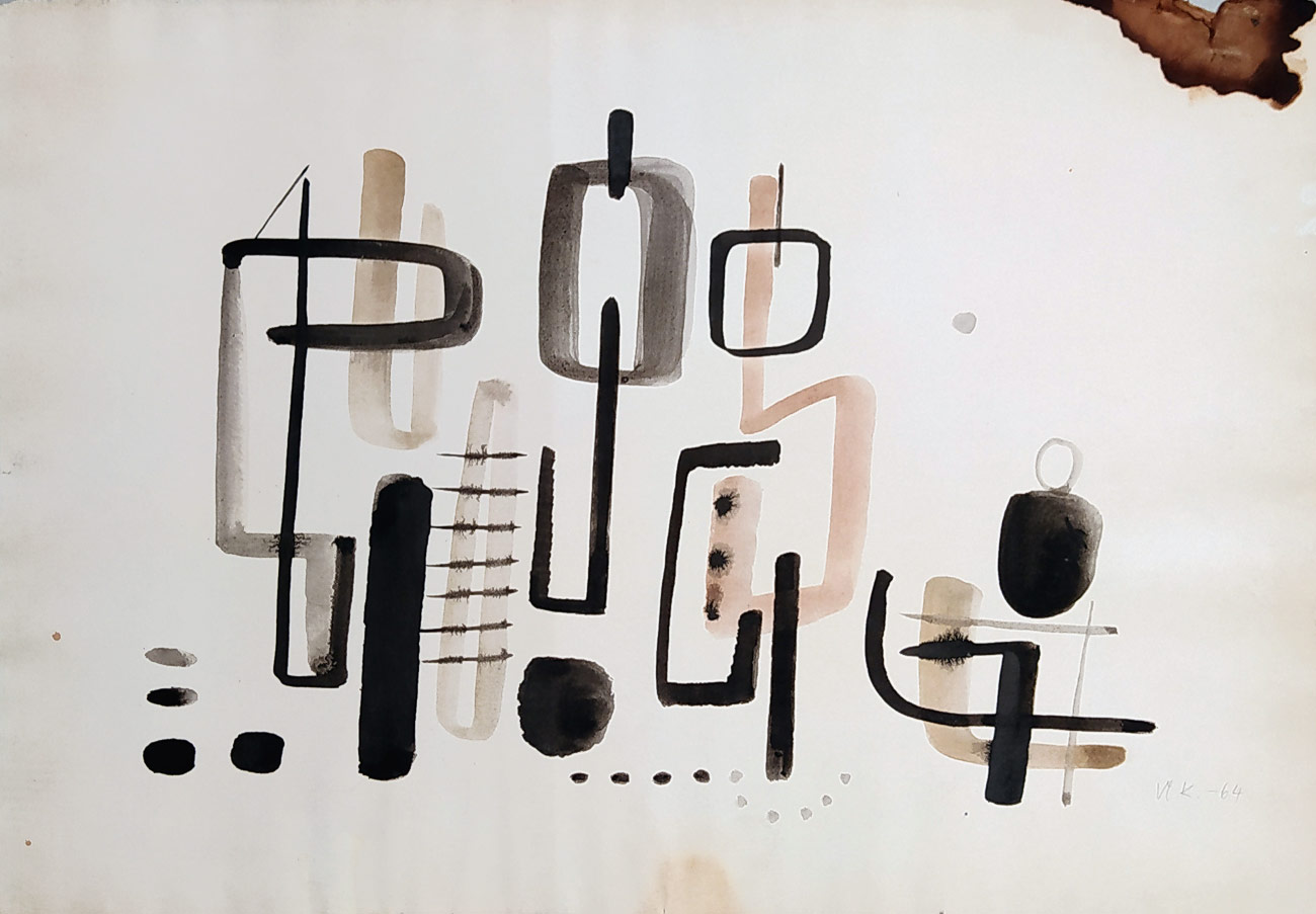 - Kompánek Vladimír – Skupina postáv, kresba tuší a akvarelem, 1964