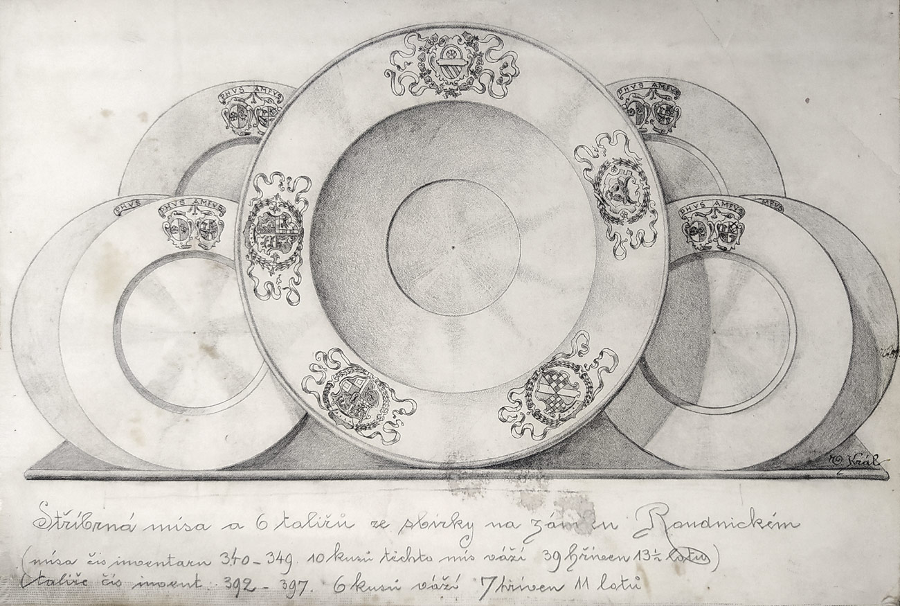 „Stříbrná mísa a šest talířů ze sbírky na zámku Roudnickém...“