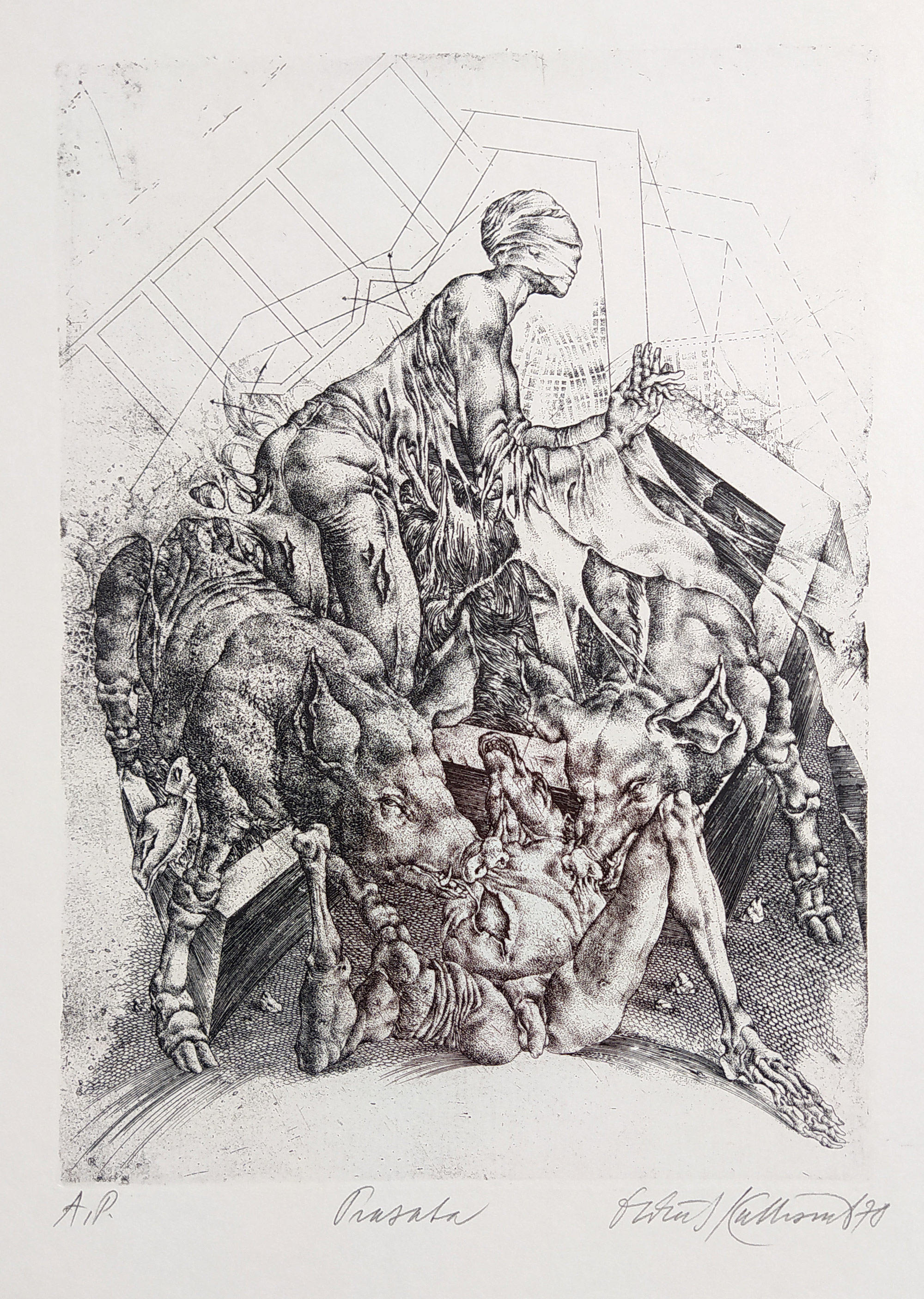 - Kulhánek Oldřich – Prasata, z cyklu Bestiárium, původní barevný lept, autorský tisk, 1978