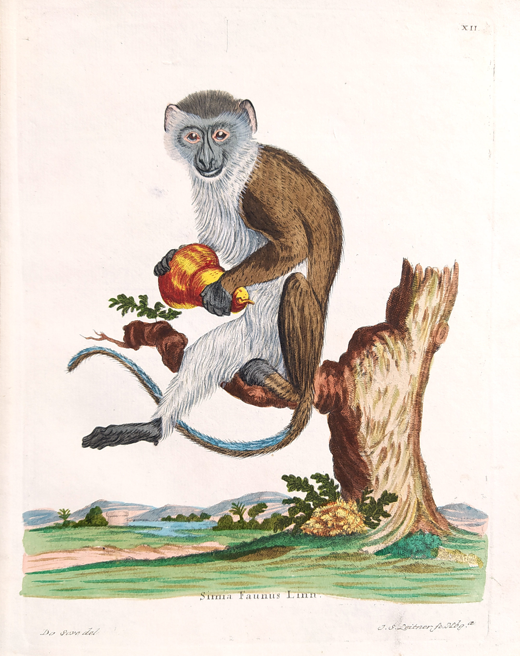 Leitner J. S. – Kočkodan, staře kolorovaný původní mědiryt, 1755