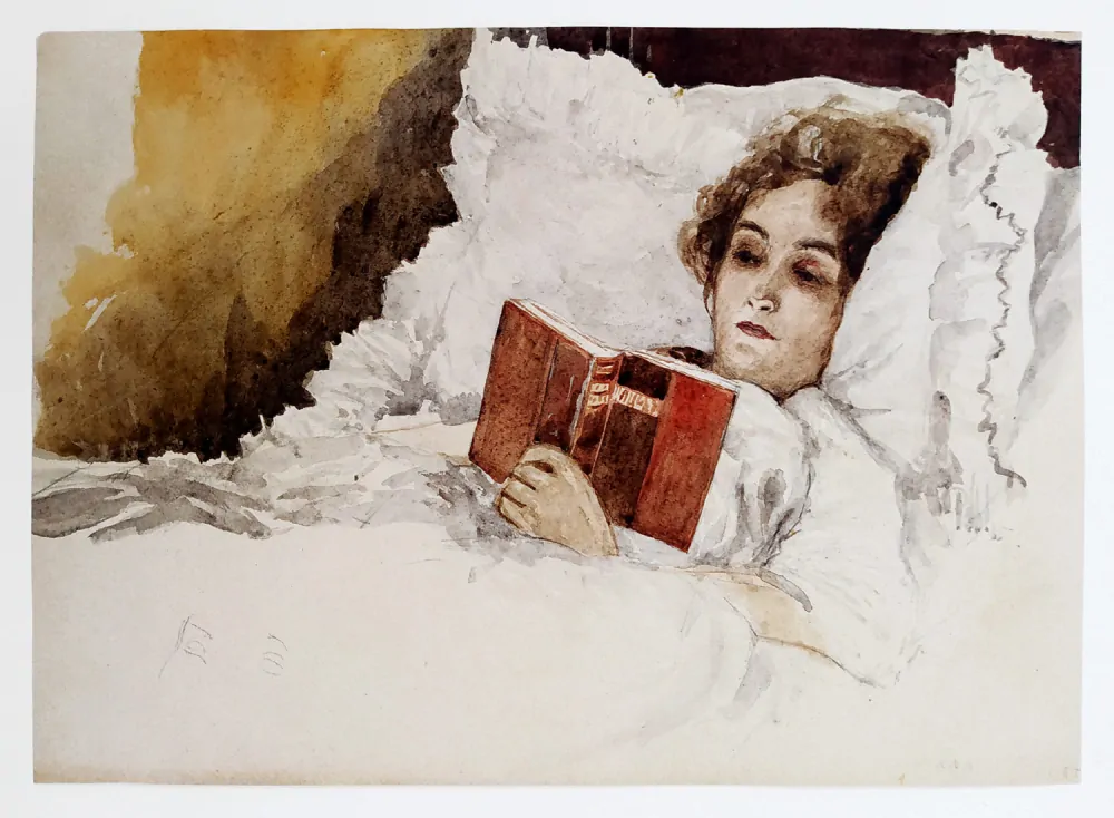Šimůnek Karel – Čtenářka, akvarelová malba, nedatováno.