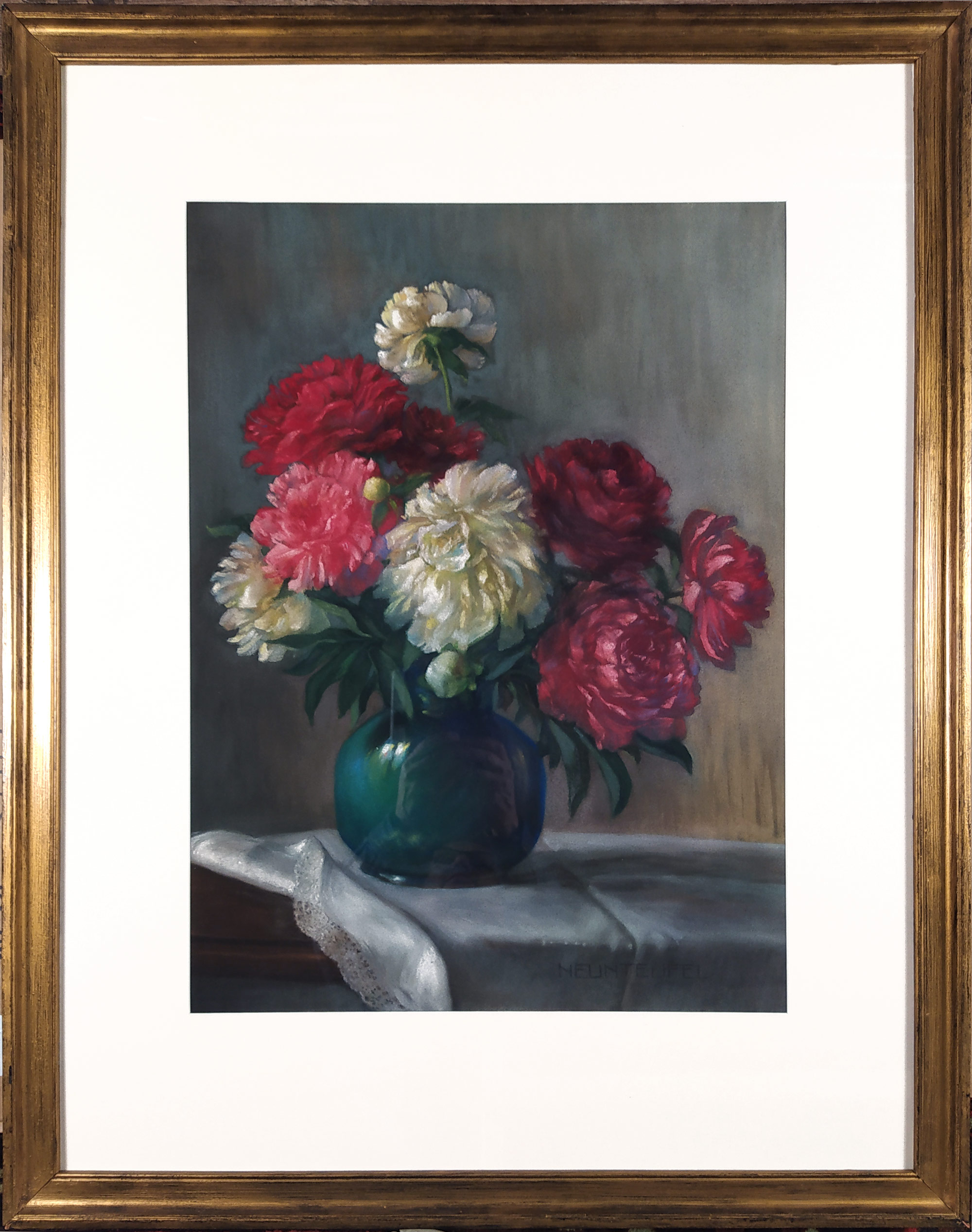 Neunteufel Max – Pivoňky, malba suchým pastelem, signováno, druhá polovina 20. stol.